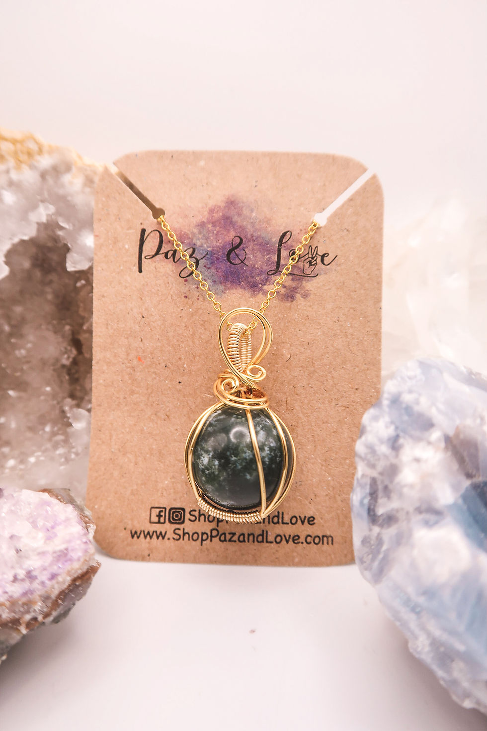 Wire Wrapped Tumbled Crystal Pendant Necklace- Twisted Style